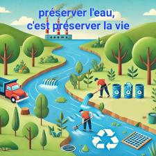 imagens legendadas, em língua francesa, com várias dicas para poupar água.